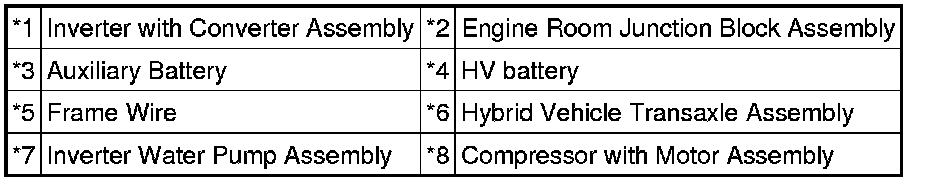 * After removing the HV battery, keep it away from water. Water may heat the HV battery, resulting in a fire.