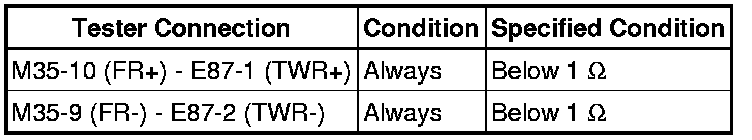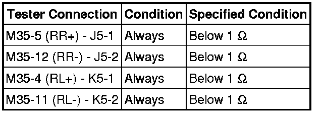 (i) Measure the resistance between each of the rear speakers and the stereo component amplifier assembly to check for an open circuit in the wire harness.