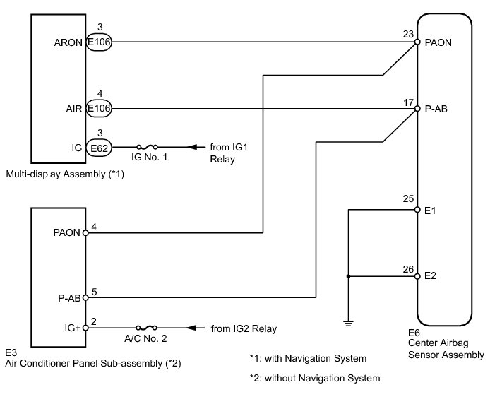 (2) Check that the connectors (on the center airbag sensor assembly side and multi-display assembly side) are not damaged.