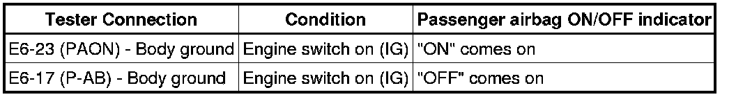 (b) Check the passenger airbag ON/OFF indicator operation.