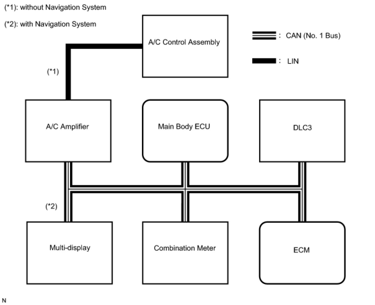 The blower motor has a built-in blower controller, and is controlled with duty control from the A/C amplifier.