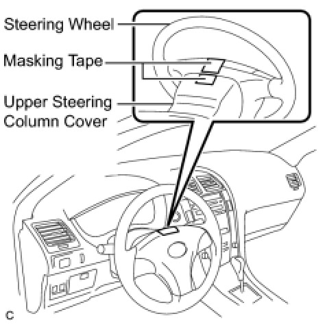 (1) Apply masking tape to the top center of the steering wheel and steering column upper cover.