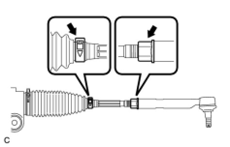 (1) Draw a line on the RH and LH tie rod ends and rack ends respectively where it can be easily seen.