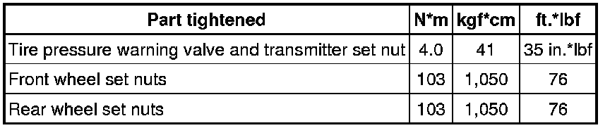 SERVICE SPECIFICATIONS: TIRE AND WHEEL: TORQUE SPECIFICATIONS