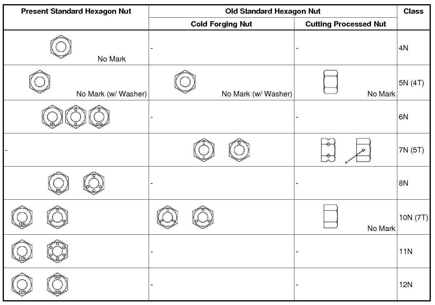 * Use a nut with the same nut strength classification number (or more) as the bolt strength classification number when tightening parts with a bolt and nut.