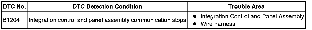 This DTC is detected when communication between the integration control and panel assembly and network gateway ECU stops for more than 10 seconds.