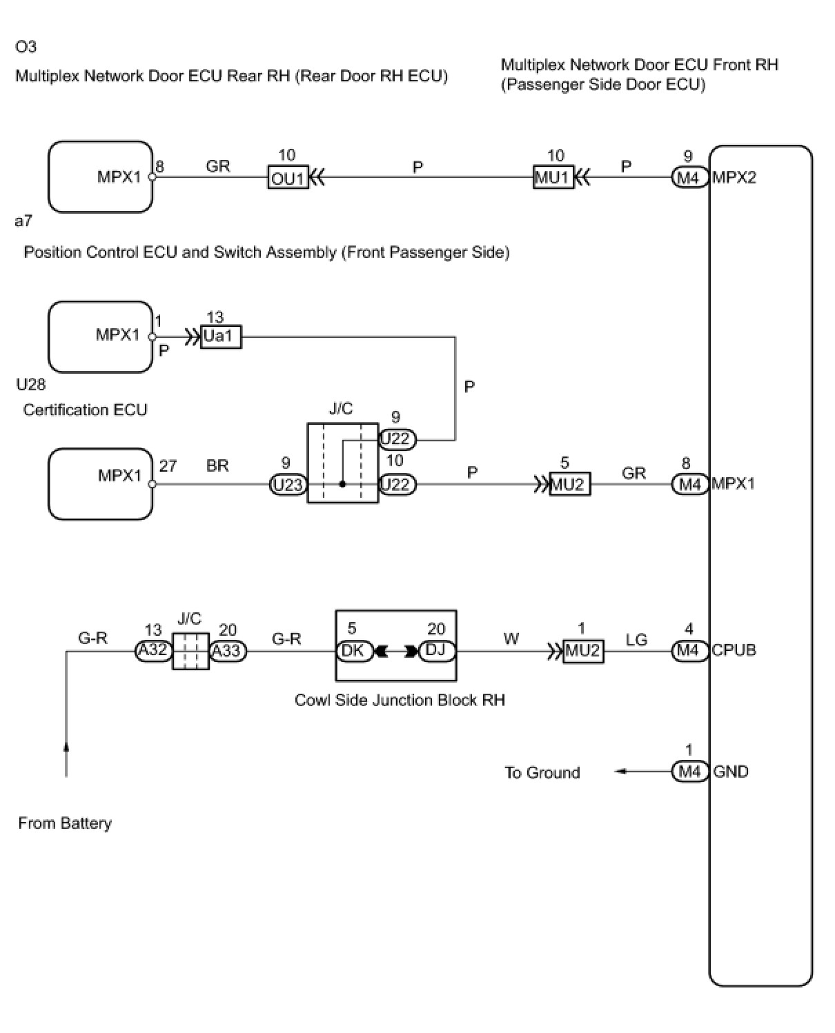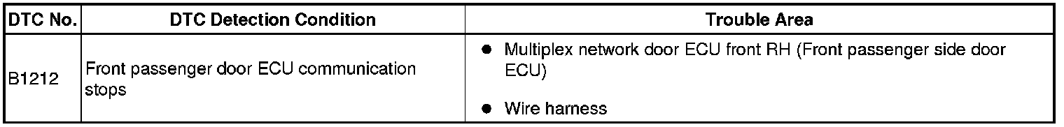 MULTIPLEX COMMUNICATION: MULTIPLEX COMMUNICATION SYSTEM: B1212: Front Passenger Door ECU Communication Stop