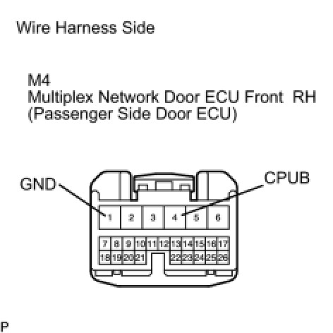 1. CHECK WIRE HARNESS (MULTIPLEX NETWORK DOOR ECU FRONT RH (FRONT PASSENGER SIDE DOOR ECU) - BATTERY AND BODY GROUND)