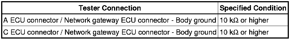 6. CHECK WIRE HARNESS BETWEEN NETWORK GATEWAY ECU AND A ECU OR C ECU