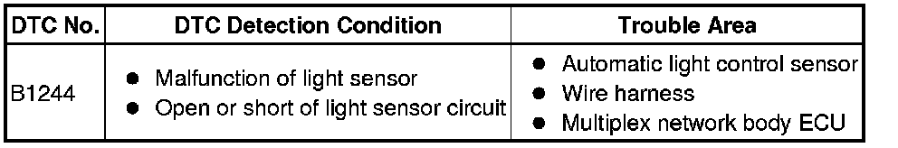 LIGHTING: LIGHTING SYSTEM: B1244: Light Sensor Circuit Malfunction