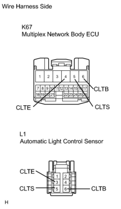 2. CHECK WIRE HARNESS (MULTIPLEX NETWORK BODY ECU - AUTOMATIC LIGHT CONTROL SENSOR)