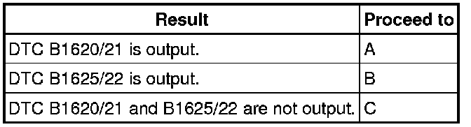 Codes other than DTC B1620/21 and B1625/22 may be output at this time, but they are not related to this check.