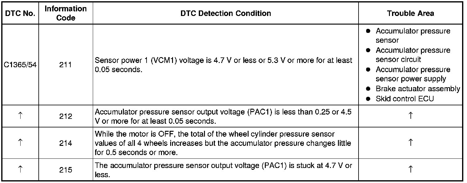 BRAKE CONTROL: ELECTRONICALLY CONTROLLED BRAKE SYSTEM: C1365/54: Accumulator Pressure Sensor Malfunction