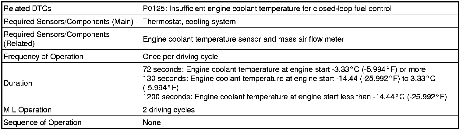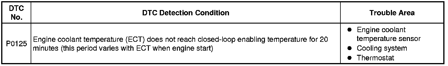 2GR-FSE ENGINE CONTROL SYSTEM: SFI SYSTEM: P0125: Insufficient Coolant Temperature for Closed Loop Fuel Control