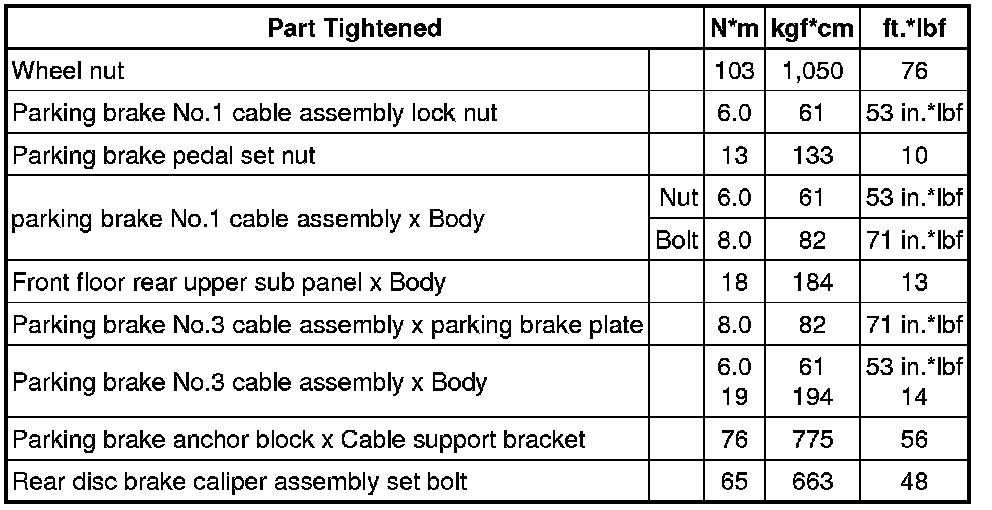 SERVICE SPECIFICATIONS: PARKING BRAKE: TORQUE SPECIFICATIONS
