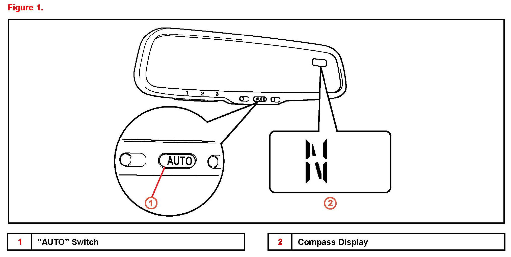Pushing the "AUTO" switch turns the compass display ON or OFF.