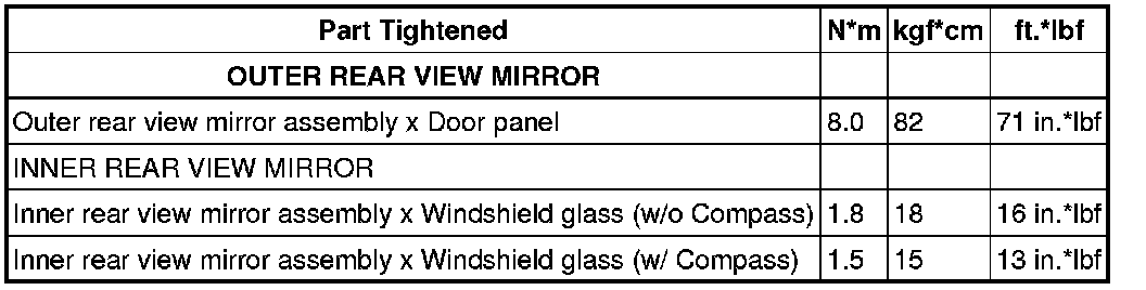SERVICE SPECIFICATIONS: MIRROR: TORQUE SPECIFICATIONS
