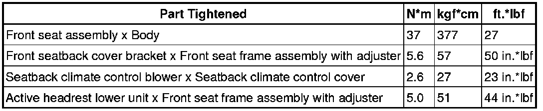 SERVICE SPECIFICATIONS: SEAT: TORQUE SPECIFICATIONS