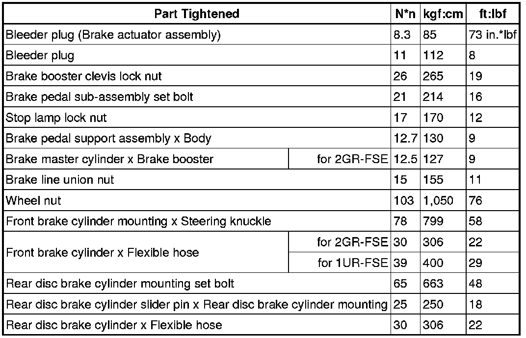 SERVICE SPECIFICATIONS: BRAKE: TORQUE SPECIFICATIONS