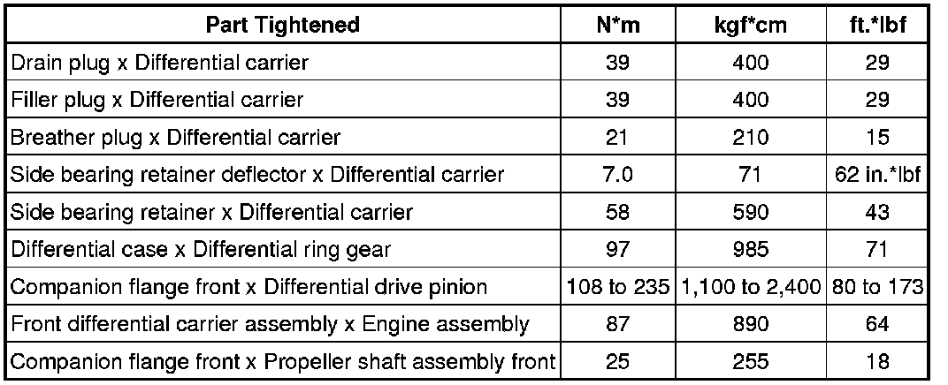 SERVICE SPECIFICATIONS: DIFFERENTIAL: TORQUE SPECIFICATIONS