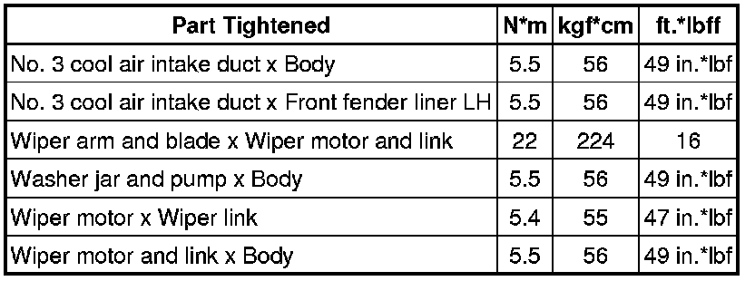 SERVICE SPECIFICATIONS: WIPER AND WASHER: TORQUE SPECIFICATIONS