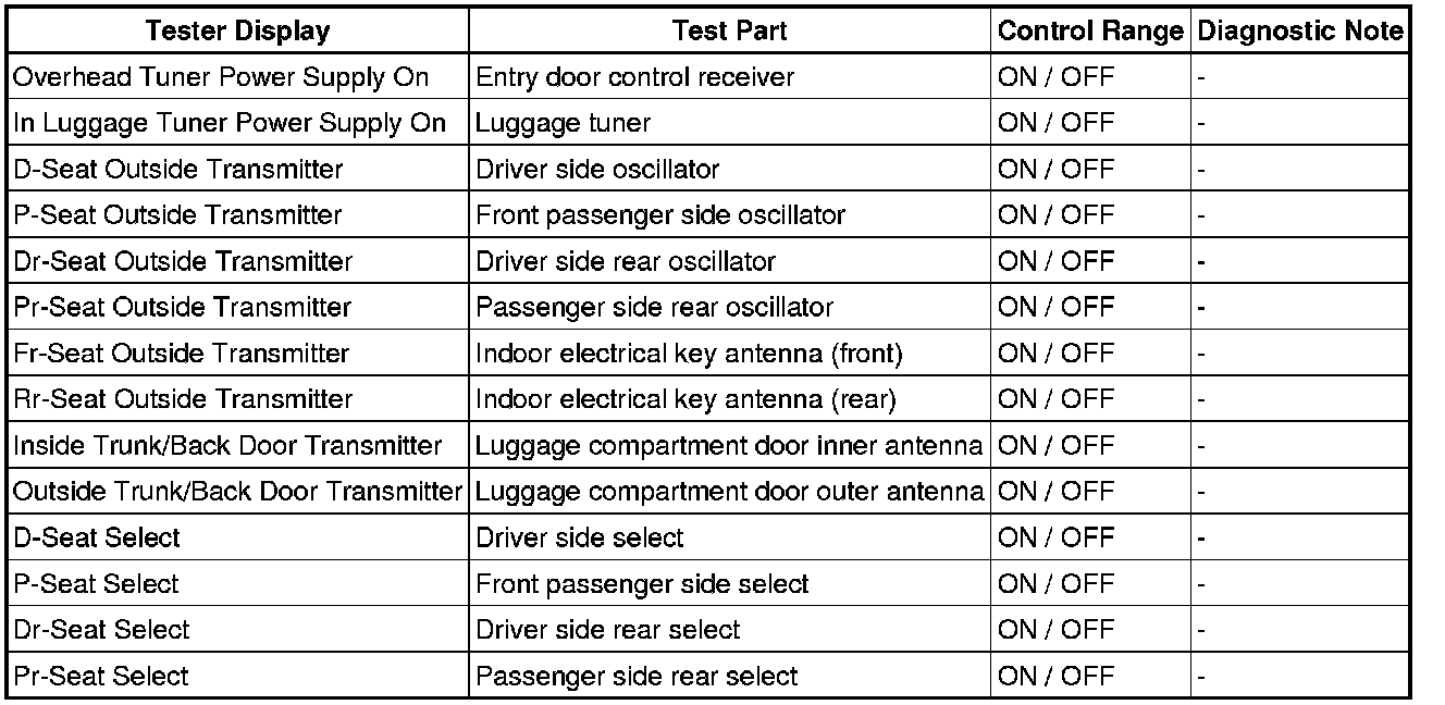 DOOR LOCK: SMART ACCESS SYSTEM WITH PUSH-BUTTON START: DATA LIST / ACTIVE TEST