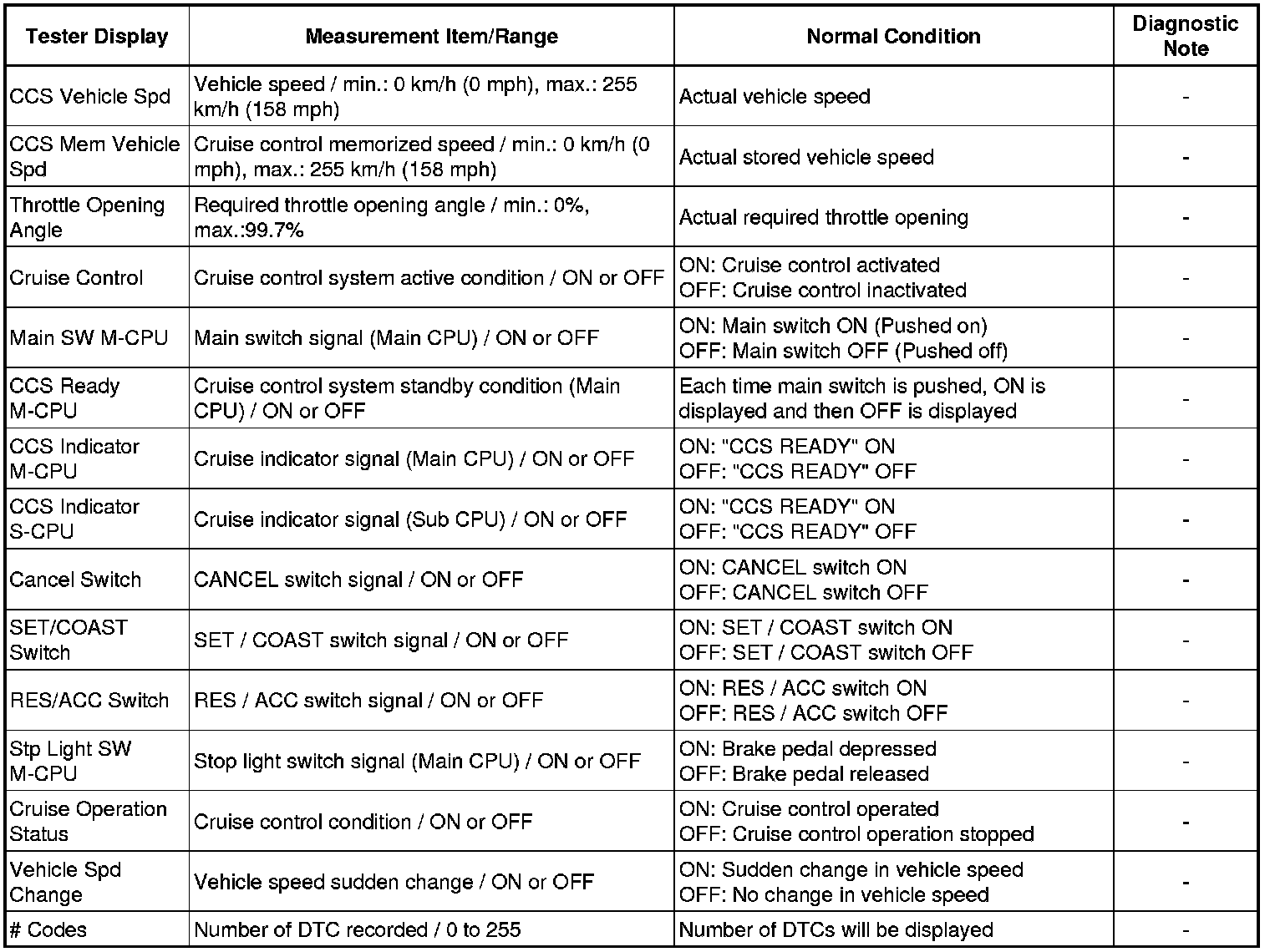 CRUISE CONTROL: CRUISE CONTROL SYSTEM: DATA LIST / ACTIVE TEST