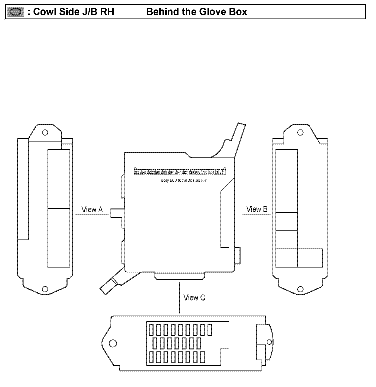 Cowl Side J/B RH - Behind the Glove Box: