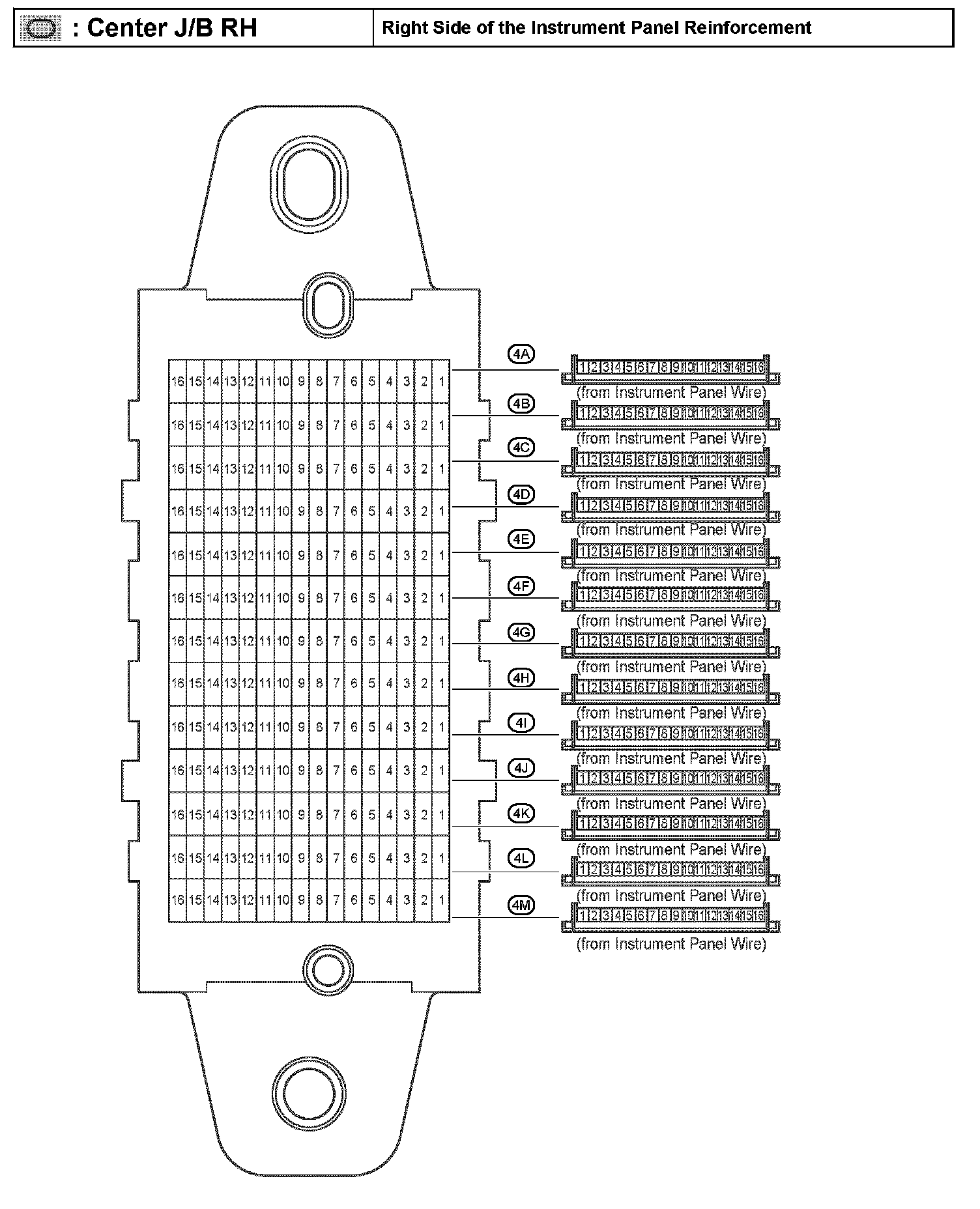 Center J/B RH - Right Side of the Instrument Panel Reinforcement: