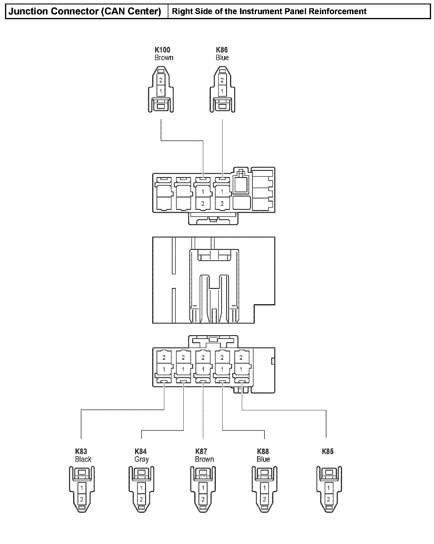 Junction Connector (CAN Center) - Right Side of the Instrument Panel Reinforcement:
