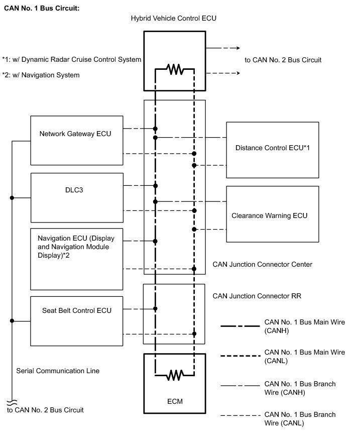(a) The CAN communication system consists of the CAN No. 1 bus and CAN No. 2 bus circuits, which are connected through the hybrid vehicle control ECU.