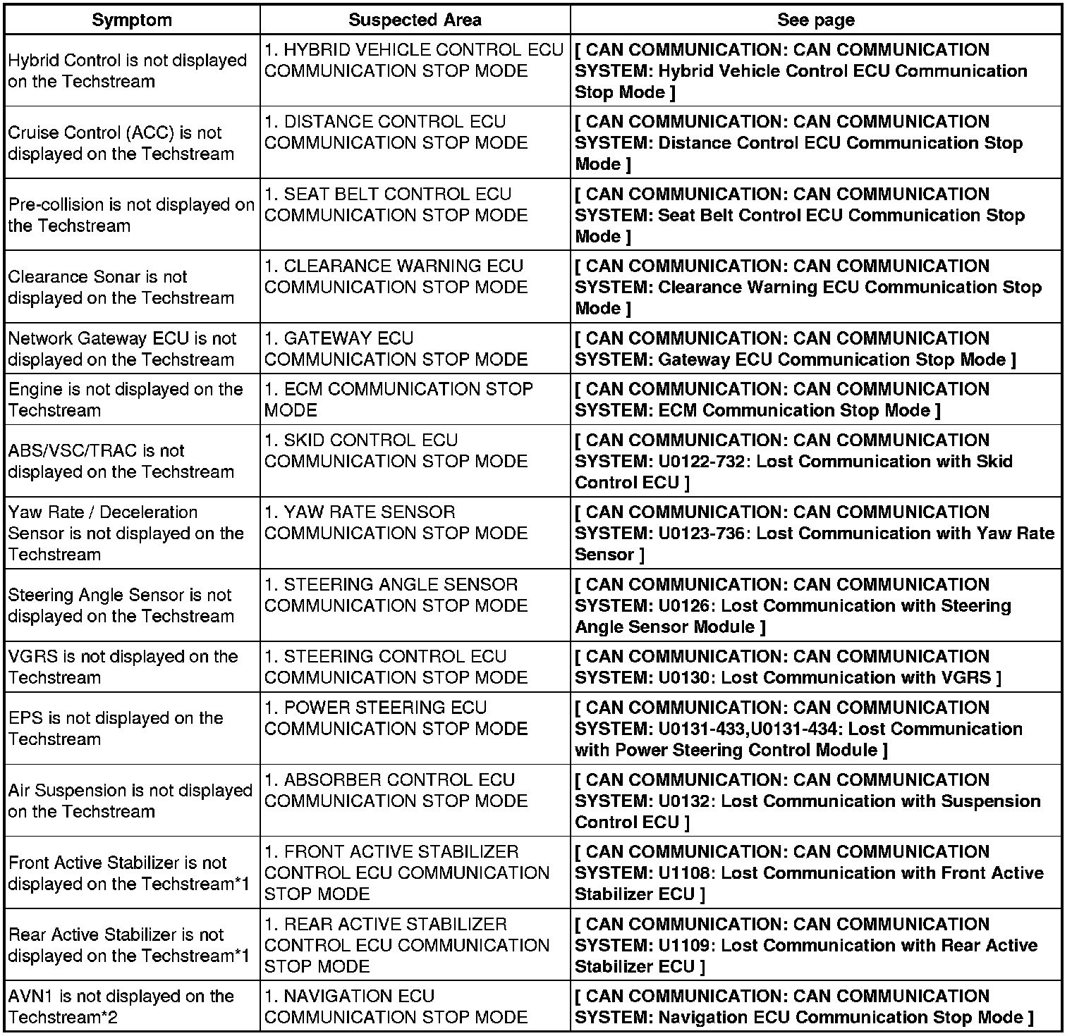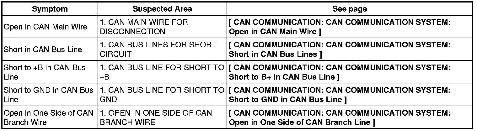 CAN COMMUNICATION: CAN COMMUNICATION SYSTEM: PROBLEM SYMPTOMS TABLE