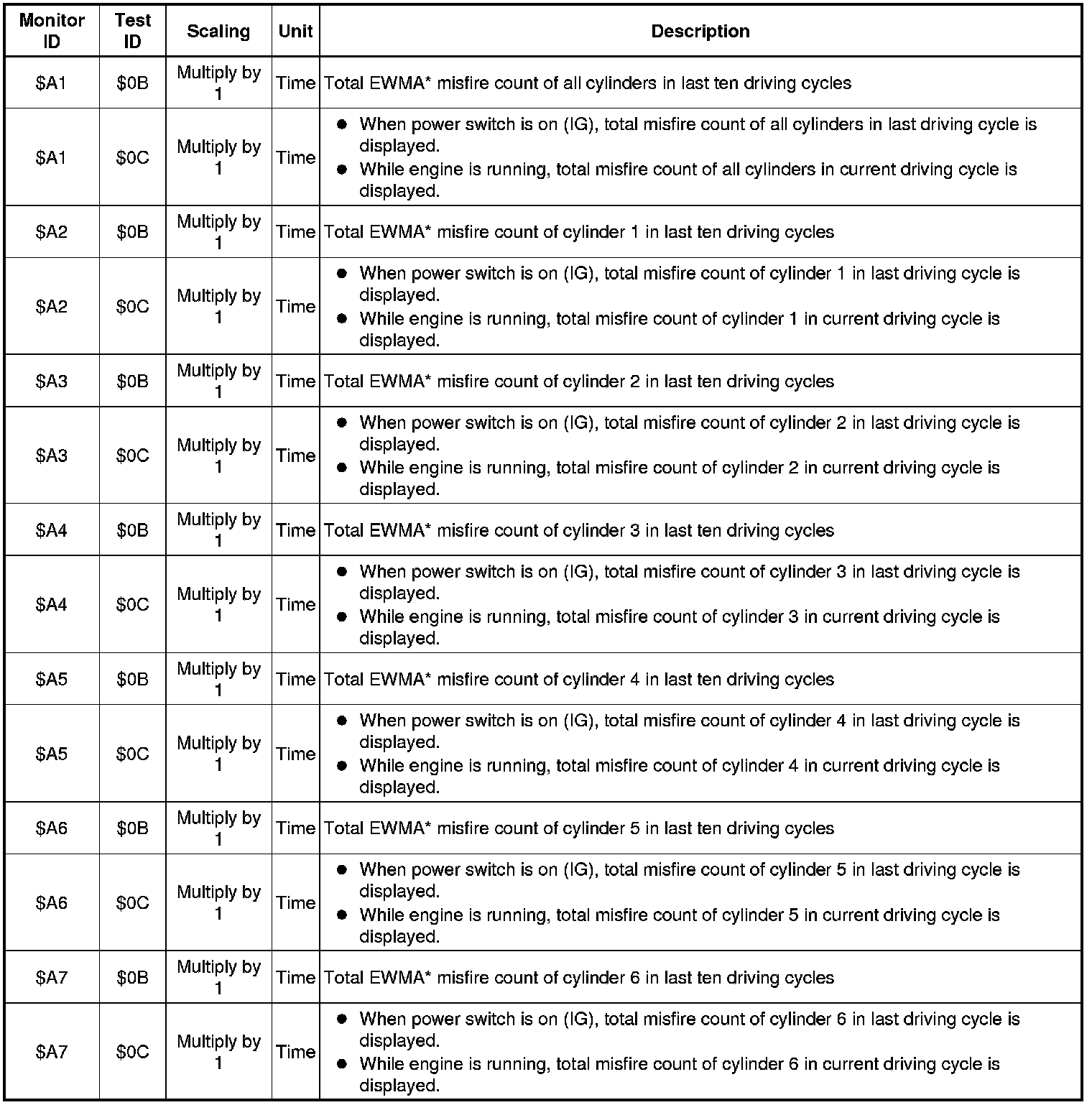 *: EWMA (Exponential Weighted Moving Average) misfire counts for last 10 driving cycles (calculated) Calculation: 0.1 x (current counts) + 0.9 x (previous average) Initial value for (previous average) = 0