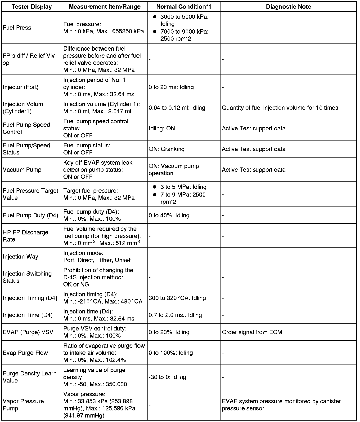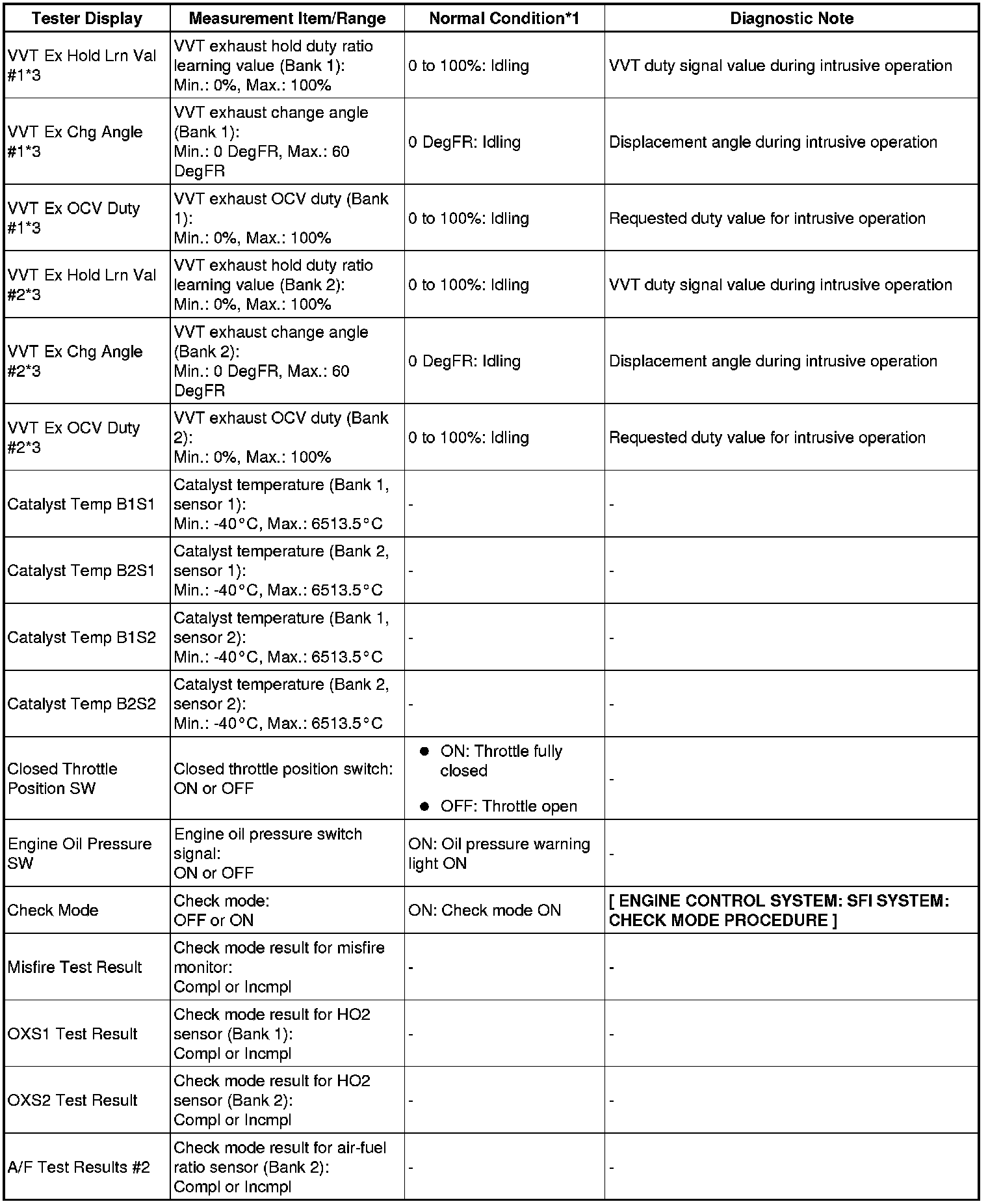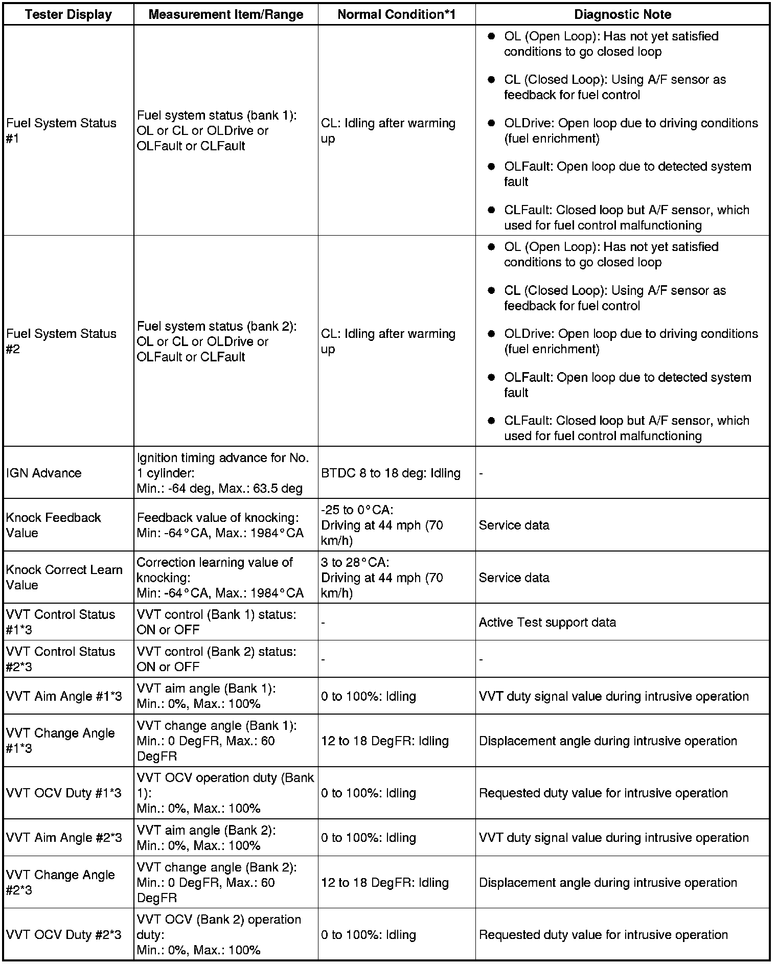 * *3: Data List values are only displayed when performing the following Active Tests: Control the VVT System (Bank 1, 2), Control the VVT Linear (Bank 1, 2) and Control the VVT Exhaust Linear (Bank 1, 2). For other Active Test, the Data List value will be 0.