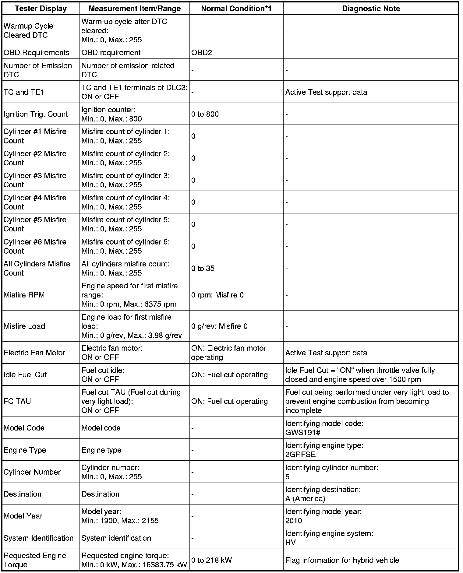 2GR-FSE ENGINE CONTROL SYSTEM: SFI SYSTEM: DATA LIST / ACTIVE TEST