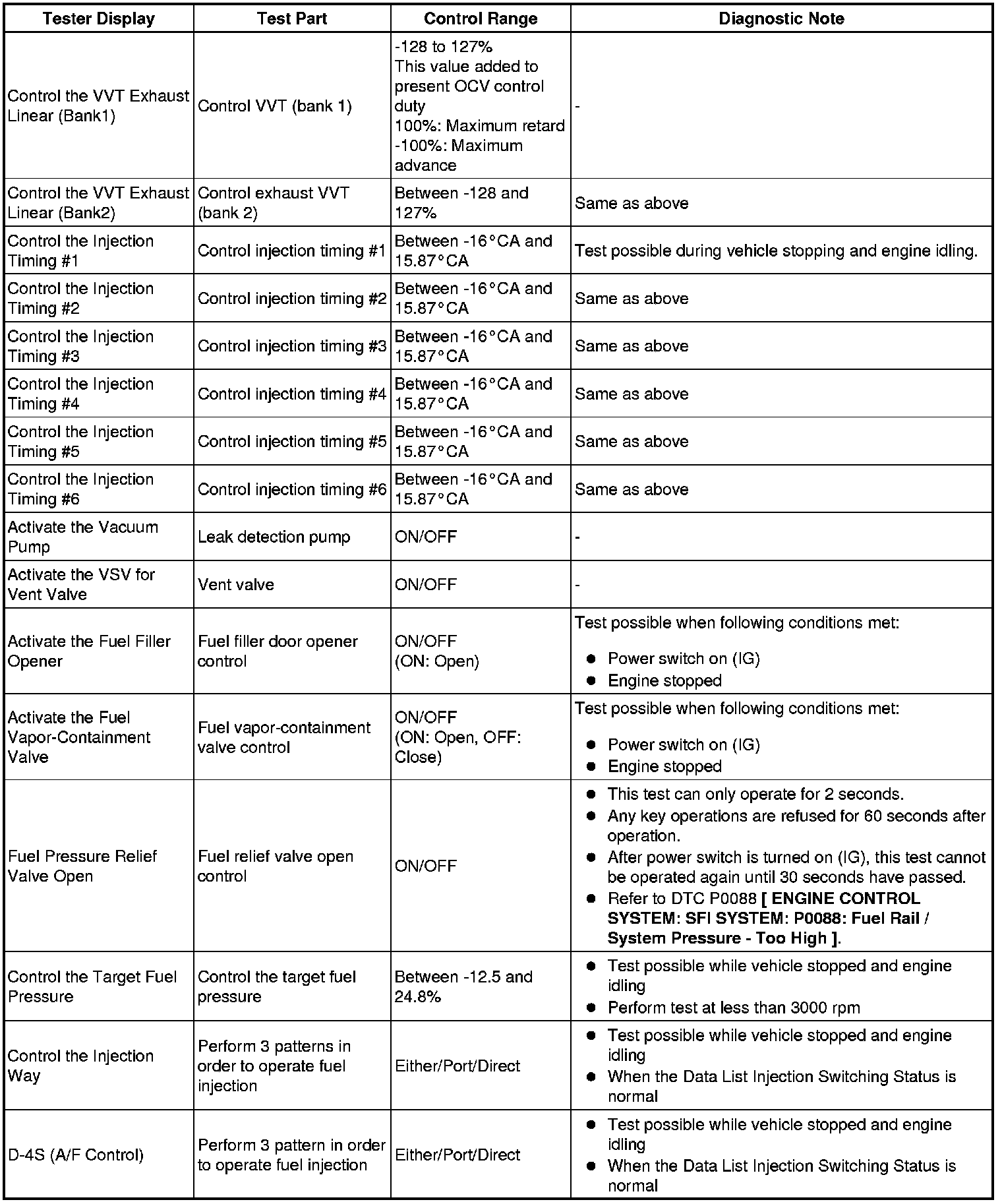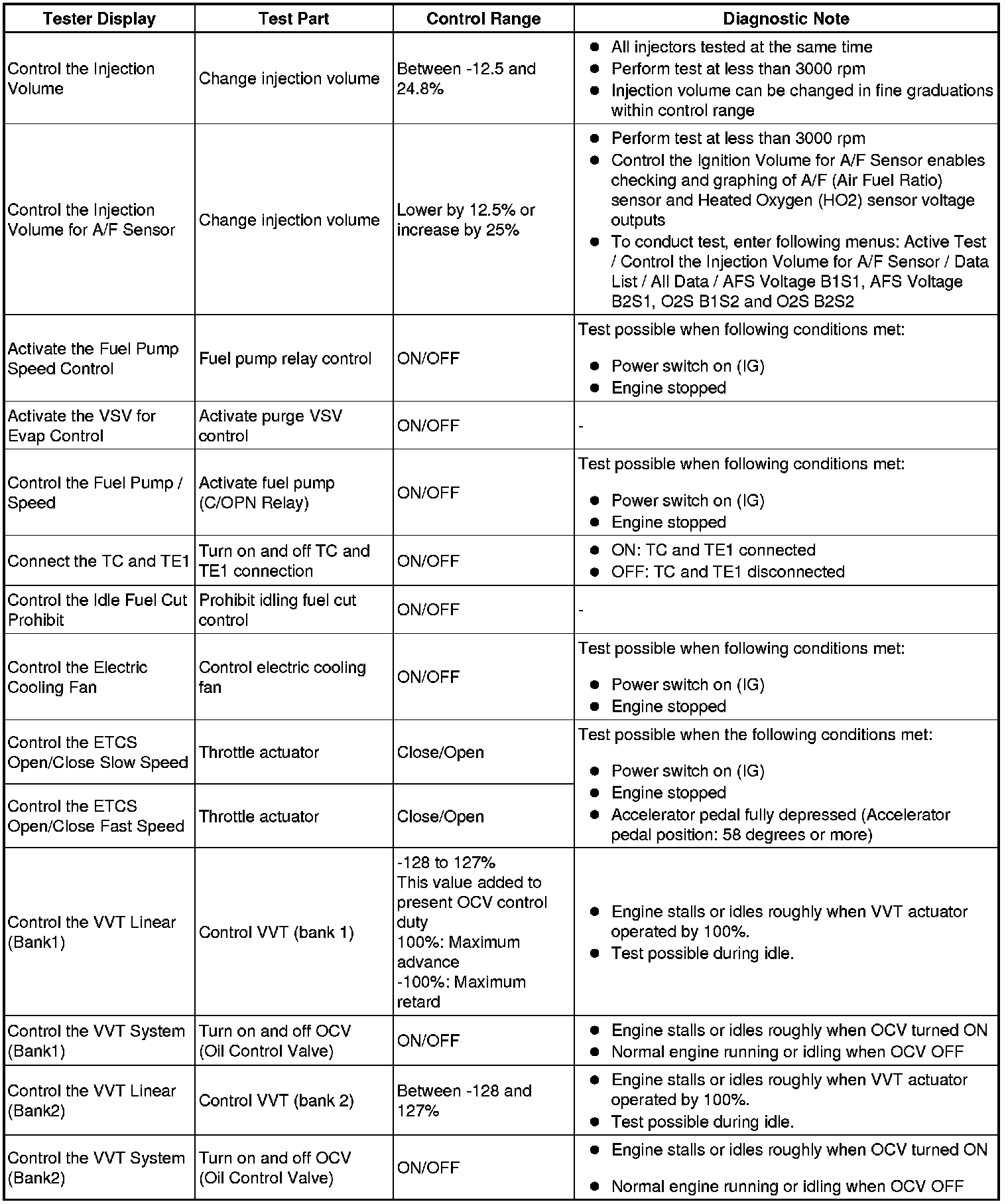 (e) Perform the Active Test by referring to the table below.