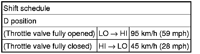 * All shift point values indicated in the above tables are actual values. Therefore, if checking a shift point with a chassis dynamometer, keep in mind that there is a range of error in the chassis dynamometer indication.