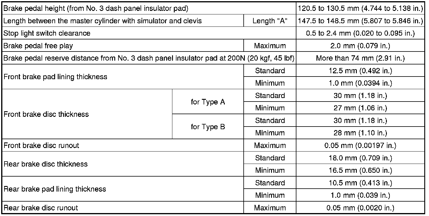 SERVICE SPECIFICATIONS: BRAKE: SERVICE DATA