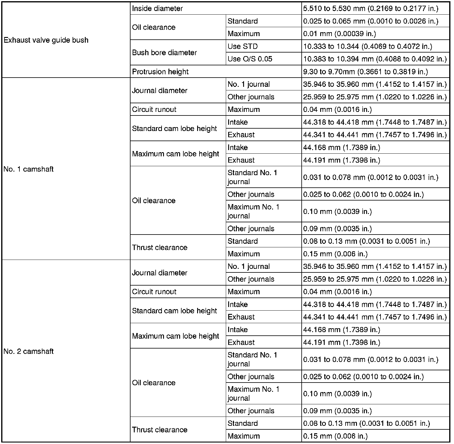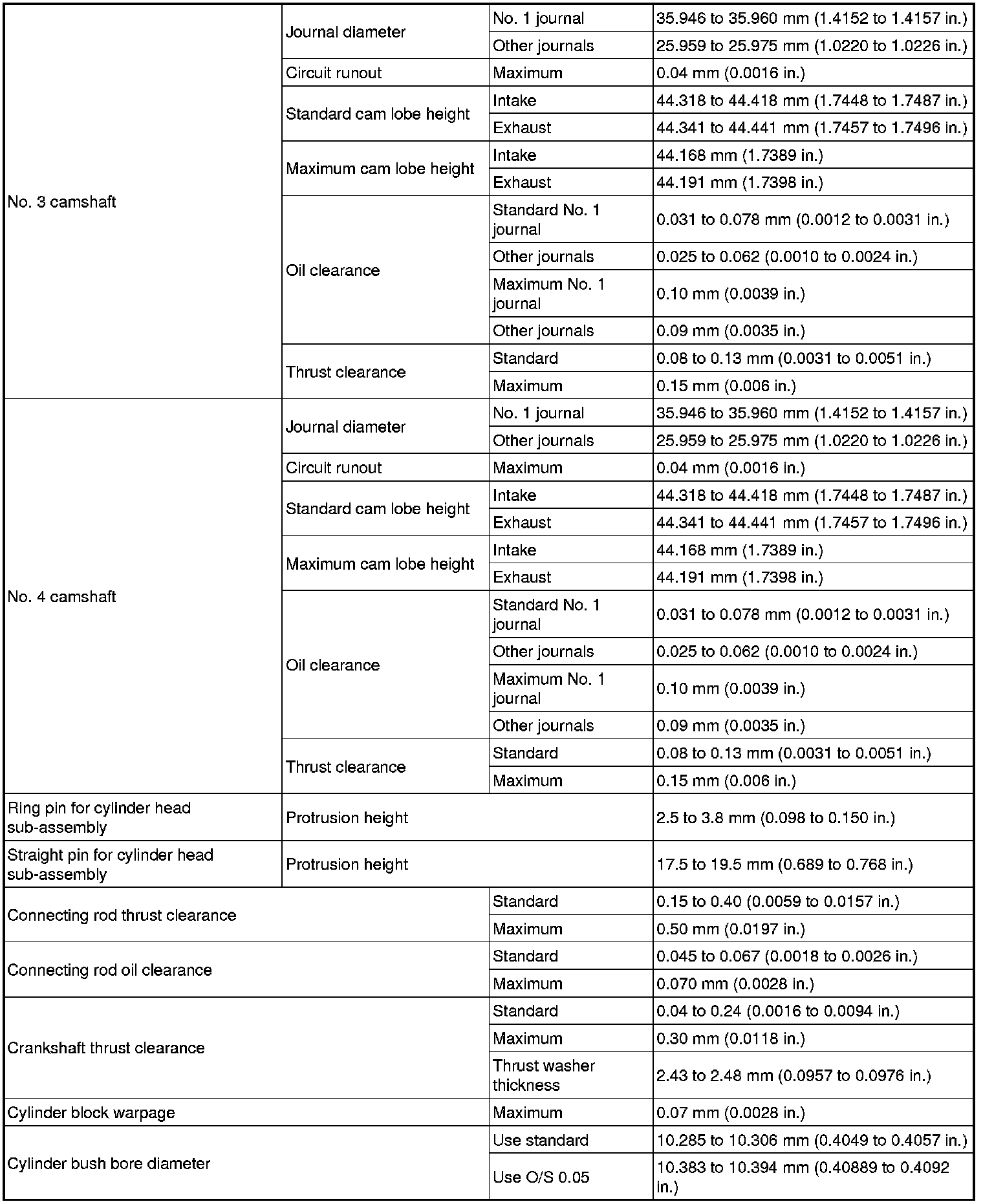 SERVICE SPECIFICATIONS: 2GR-FSE ENGINE MECHANICAL: SERVICE DATA