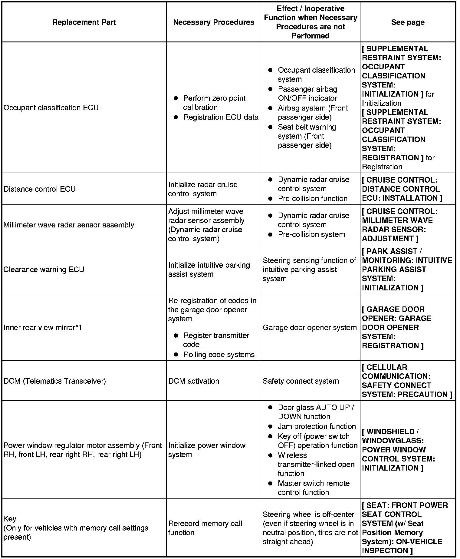 1. PROCEDURES NECESSARY WHEN BATTERY TERMINAL IS DISCONNECTED/RECONNECTED