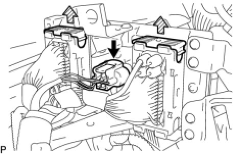 (c) Pull the 2 lock levers upward to release the lock and disconnect the 3 connectors.