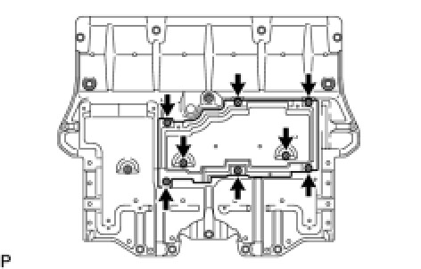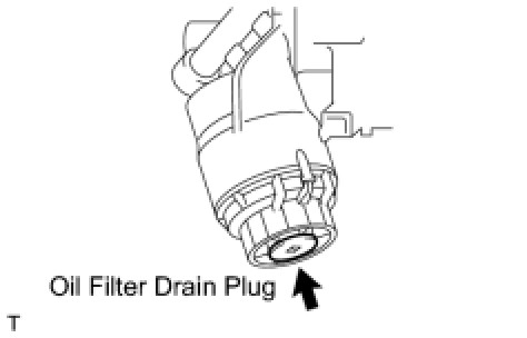 (b) Remove the oil pan drain plug and drain the engine oil into a container.