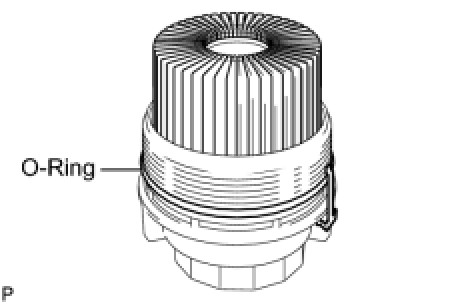 (b) Apply a small amount of engine oil to a new O-ring and install it to the oil filter cap.