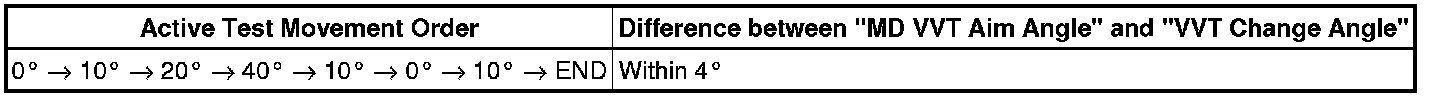 (e) Enter the following menus: Powertrain / Engine / Active Test / Control the MD VVT Linear (Bank1) or Control the MD VVT Linear (Bank2) / All Data / MD VVT Aim Angle (Bank1) and MD VVT Change Angle (Bank1) or MD VVT Aim Angle (Bank2) and MD VVT Change Angle (Bank2).