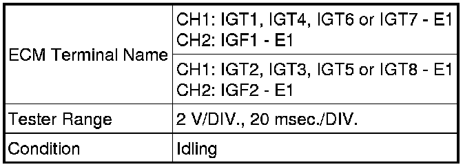 Igniter IGT signal (from ECM to igniter) and Igniter IGF signal (from igniter to ECM):