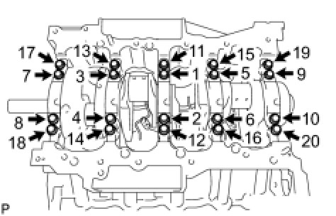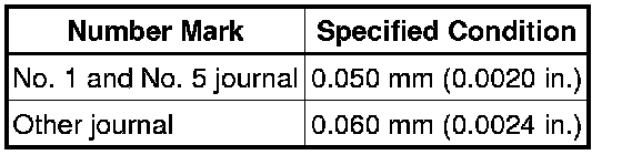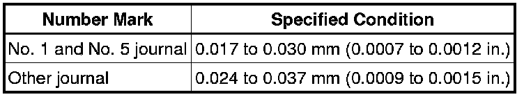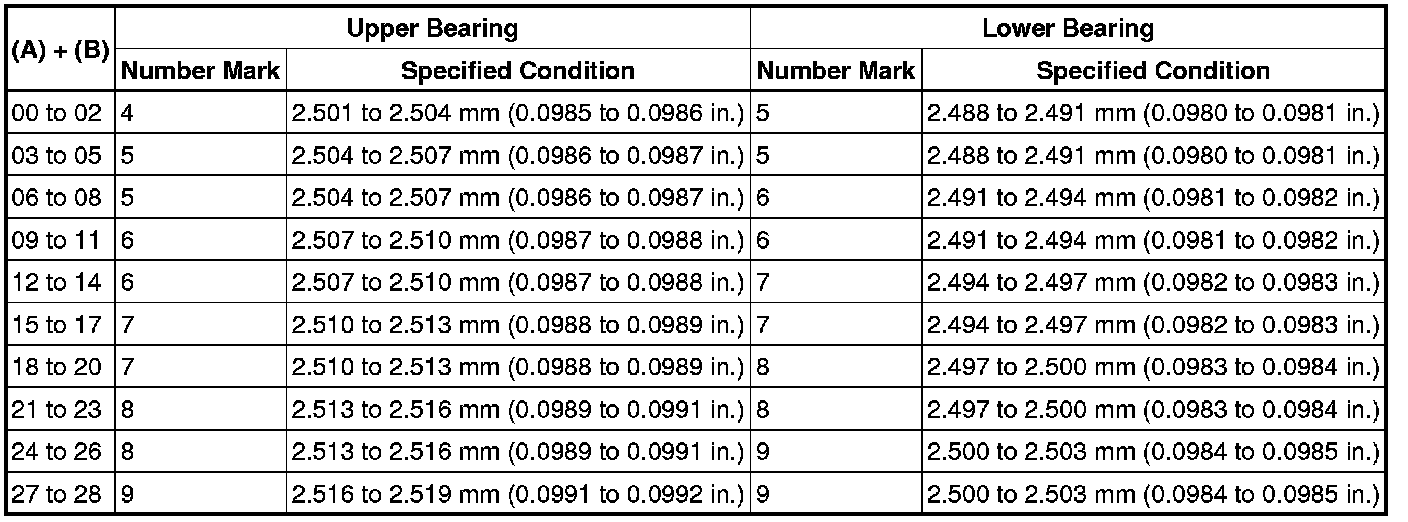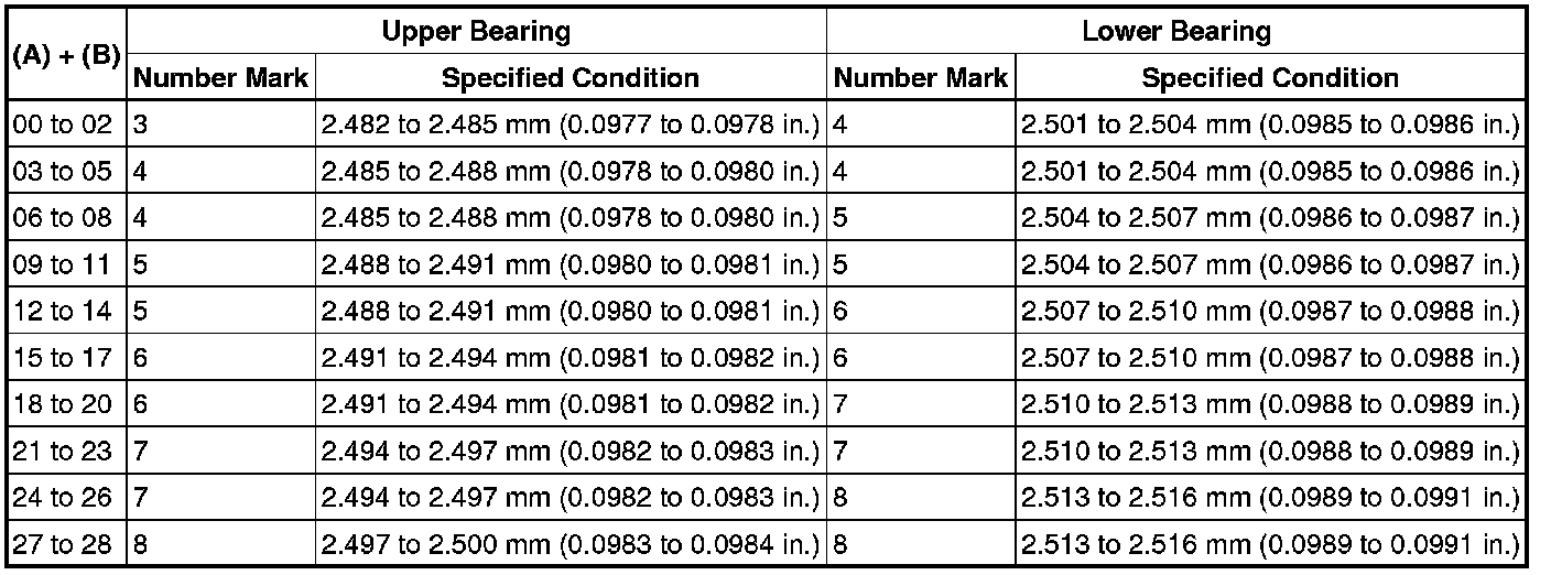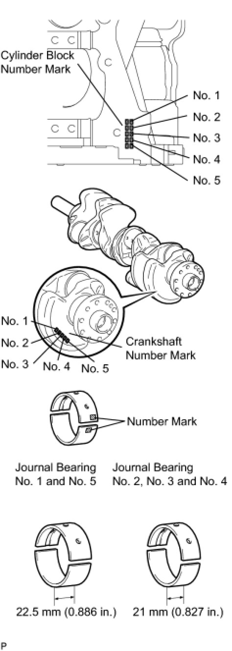 For No. 1 and No. 5 position bearings, use bearings marked 4, 5, 6, 7, 8 and 9. For other position bearings, use bearing marked 3, 4, 5, 6, 7 and 8.