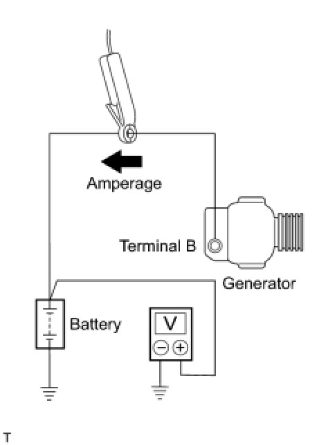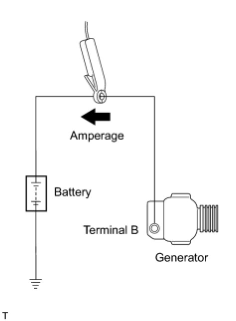 * If the ammeter reading is less than the standard amperage even though the battery is fully charged, the load is not sufficient. Therefore, operate the wiper motor, rear window defogger, etc. to increase the load, and perform the measurement again.