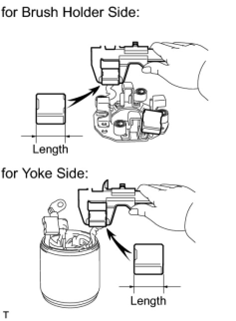 If the brush length is less than the minimum, replace the brush holder and yoke assembly.