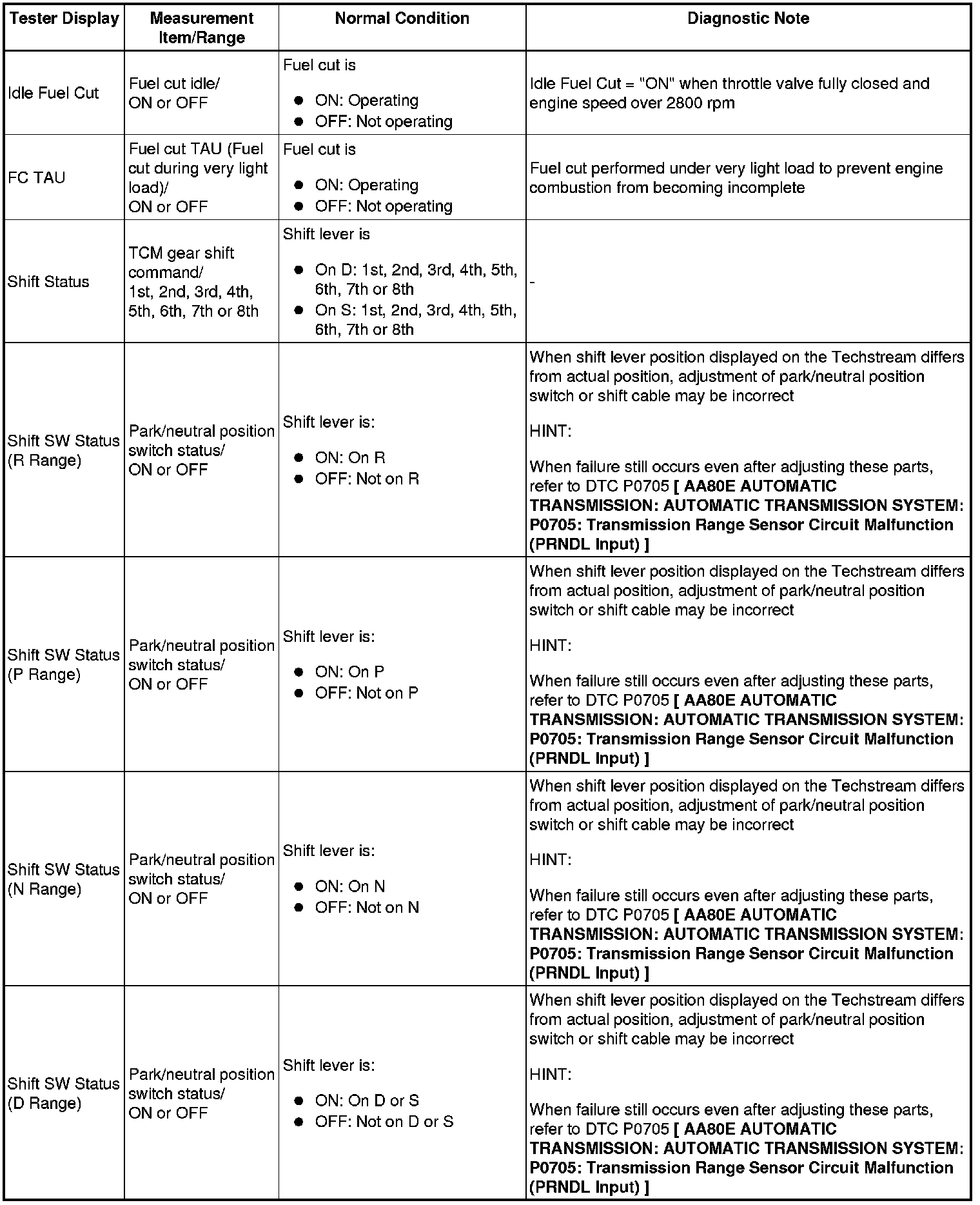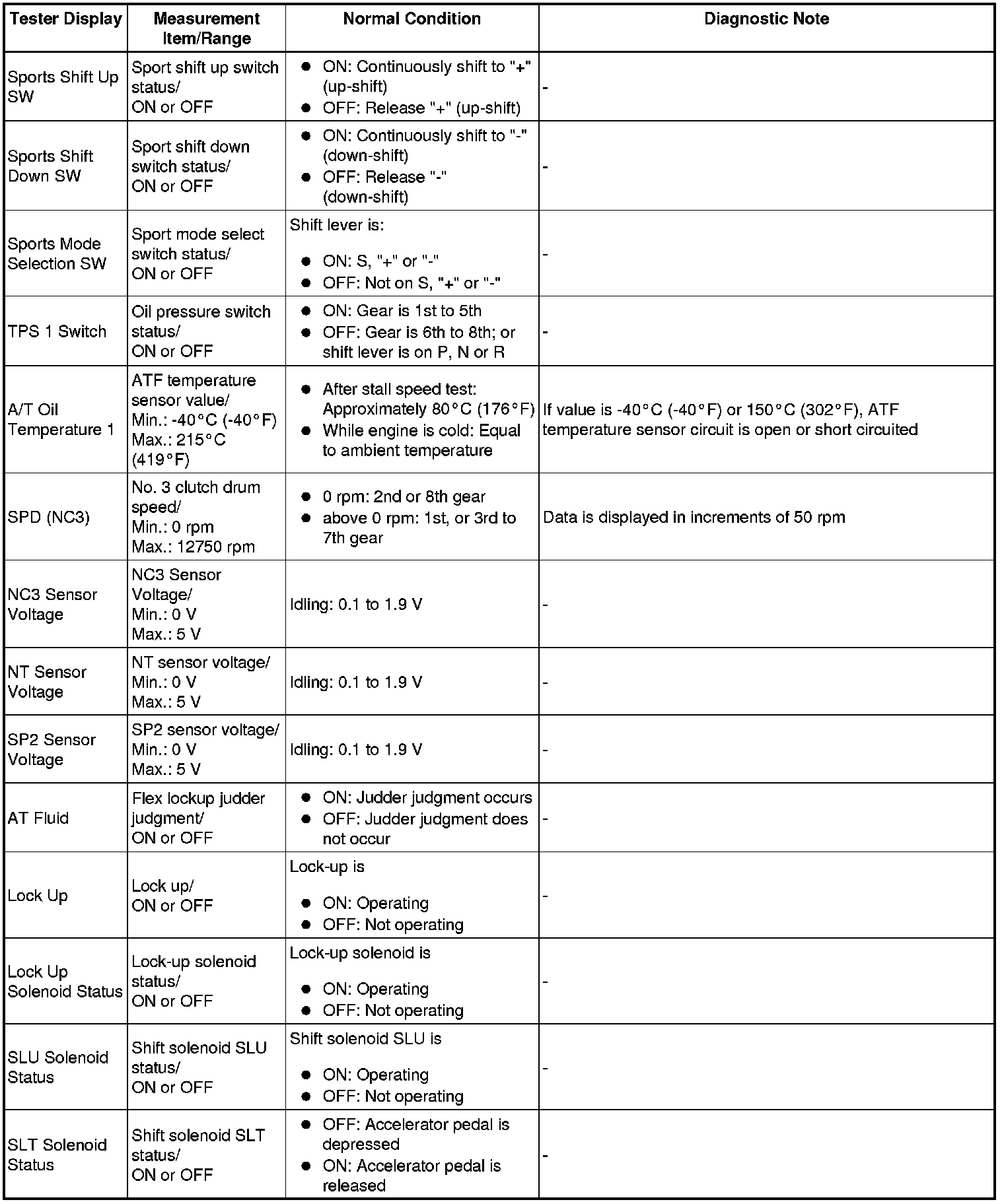 AA80E AUTOMATIC TRANSMISSION: AUTOMATIC TRANSMISSION SYSTEM: DATA LIST / ACTIVE TEST