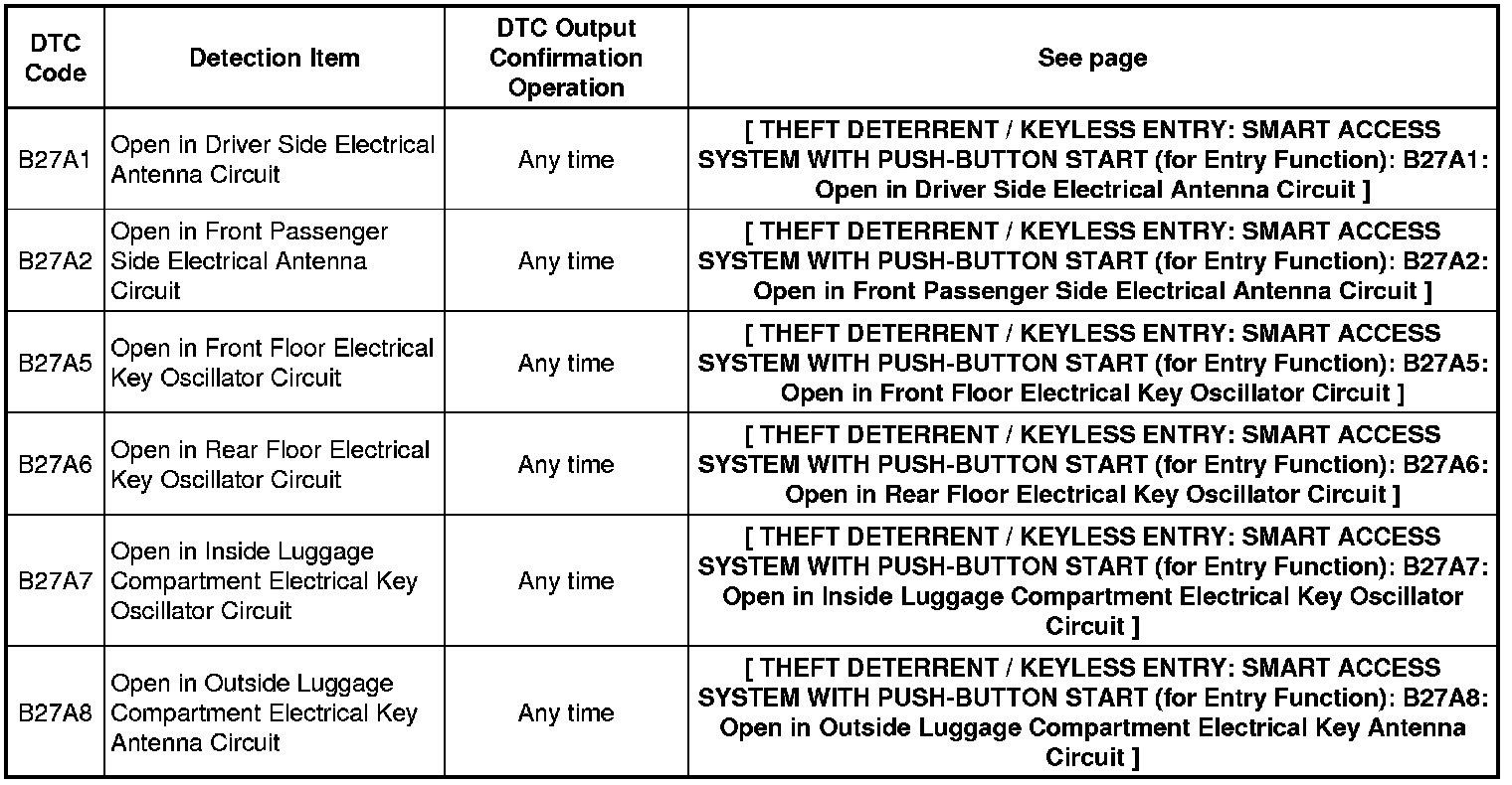 THEFT DETERRENT / KEYLESS ENTRY: SMART ACCESS SYSTEM WITH PUSH-BUTTON START (for Entry Function): DIAGNOSTIC TROUBLE CODE CHART
